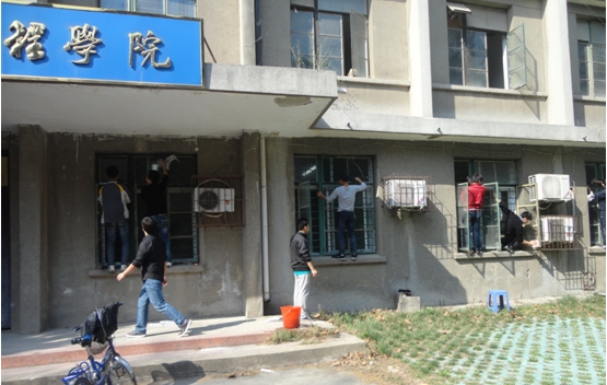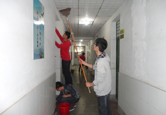 活动过程中,党员们发扬不怕苦、不怕脏、不怕累的精神,积极主动地对楼内走廊上的每一丝蜘蛛网,门窗上的每一颗尘土,地面上的每一处碎叶、垃圾都进行彻底清理。经过一下午的辛苦劳动,同学们虽已疲惫不堪,但看到整个校园环境焕然一新,每个人脸上都洋溢着幸福的笑容。