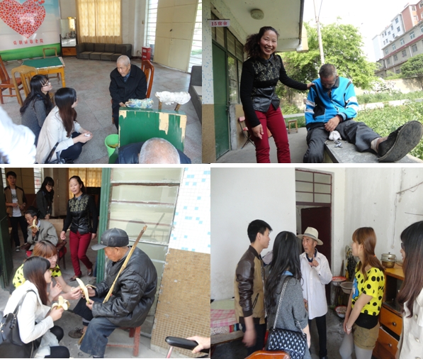 当日下午,阳光明媚、风和日丽,我院团委老师和10余名暖阳爱老团的志愿者们带着慰问品抵达敬老院,负责人姚院长对志愿者表达热烈的欢迎和诚挚的感谢,详细介绍了敬老院的情况。随后,志愿者分成若干小组,分工合作,为老人们送上香蕉、苹果等慰问品,帮老人剪指甲、叠被子,与老人联欢……活动中,志愿者对老人嘘寒问暖,询问老人们的生活起居以及身体状况,把最真诚的关爱送给他们,使老人感受到亲人般的温暖。虽然有不少智障和残疾老人,他们不能完整表达自己的心声,但是从点滴言行间看出老人们对志愿者的到来感到非常高兴,一位老人还情不自禁地献唱“敖包相会”,并讲述他们年轻时的故事,让在场的同学们异常感动。