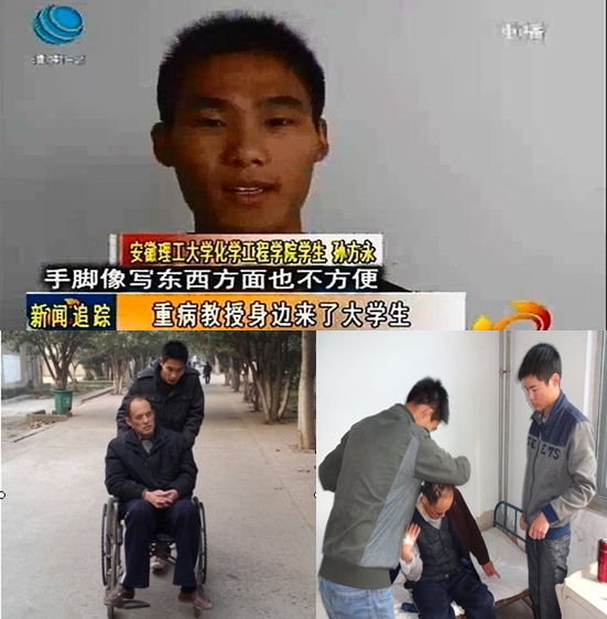 以后的两年多的时间里,孙方永每周都会到这个家庭,帮侯老师洗澡、拿药、送医院、打扫卫生,平常还推着轮椅带侯老师散步。侯老师需要看病、住院治疗时,他都会随叫随到。随着侯老师身体状况的恶化,再加上,这个社区还有其他需要帮扶的困难老人,这让孙方永感受到需要有更多的人参与到帮扶中来。作为班长他开始发动班级同学,一起到社区走访、调查,摸清了一些困难老人的的住址、电话、健康状况、收入情况、亲情情况、邻里关系等信息。帮扶对象的增加,需要一个强大的团队做支撑,于是他成立了一个“暖阳爱老团”和大学生帮扶困难老人爱心公益联盟,并建立网络平台,招募志愿者。经过两年多不断地实践,暖阳爱老帮扶团队逐渐壮大。目前,团队成员已从最初的5名扩大到58名,成员中有学生和老师,有医院的医生和医学专业的同学,有淮南财政局的工作人员和区政协委员,有社区的老人和敬老院的负责人。帮扶范围也从1个社区扩大到淮南市的6个社区,帮扶对象也从开始时侯波、侴万禧、李元福3位老人渐渐扩大到了50余位。他们的事迹经淮南电视台、颍州晚报、中国大学生在线,安徽青年网等媒体报道后,受到社会的广泛好评。