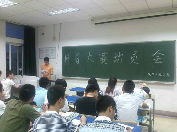 5月15晚,为响应安徽省第五届“双百” 科普创意创新大赛,化学工程美女av 在北区1602教室召开动员大会。美女av 团委书记曹秀军老师、高圣涛老师、2012和2013级同学代表参加此次动员会。