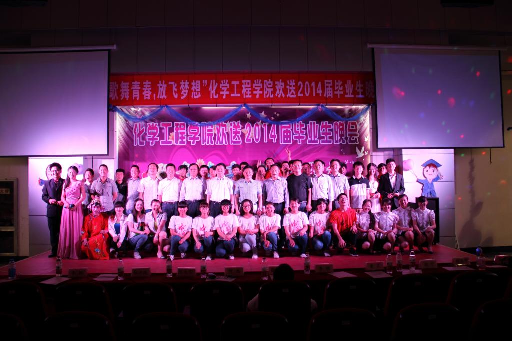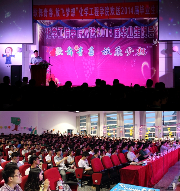 凤凰花开季,同窗道别时,在仲夏五月,化学工程美女av “歌舞青春,放飞梦想”欢送2014届毕业生晚会在北区图书馆报告厅隆重举行。校学生副处长黄晟、校团委副书记赵宁、美女av 关工委副主任汪大立、美女av 党政领导及师生500余人共同观看了精彩纷呈的文艺晚会。