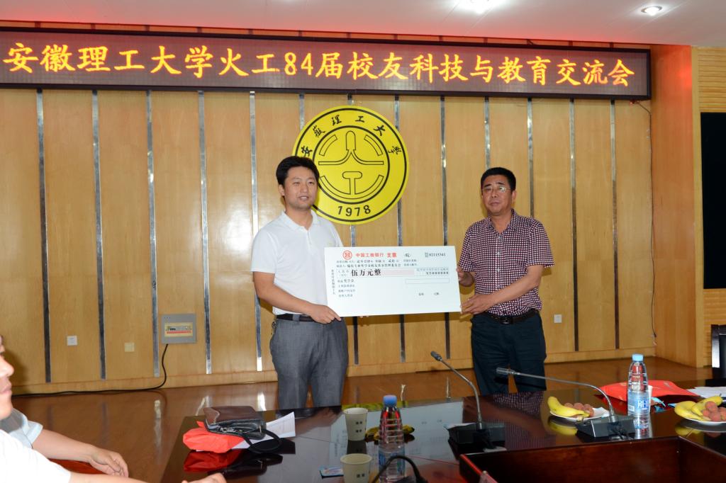 化工美女av 院长何杰代表全院师生对校友们回校考察、交流表示衷心欢迎,并介绍了美女av 的发展情况和取得的主要成就;代表全体师生对火工84届校友对美女av 的关心和支持表示真诚的谢意。校友代表、深圳金奥科技有限公司王明君代表全体校友发言,他用朴实的言语表达了本次聚会的激动心情,回顾了当年在学校成长、学习的经历及对母校的感恩之情。最后,校友们向母校捐赠了6万元助学教育资金。