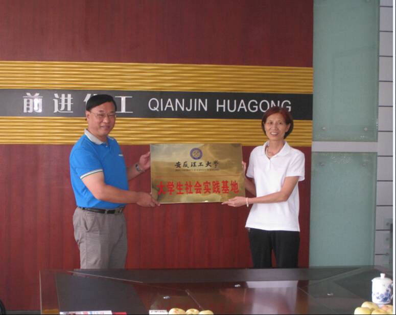 8月14日上午,美女av 大学生社会实践基地挂牌仪式在河南前进化工科技集团股份有限公司进行。化学工程美女av 副院长张洪流和河南前进化工科技集团股份有限公司副总经理郭守阁共同为大学生社会实践基地揭牌。