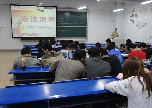 2011级弹药专业朱帅同学说:“这次会议使我对党的十八届四中全会精神有了更深刻的认识,我对于法治国家、法治政府、从严治党充满期待,我会努力学习,为依法治国的建设做贡献。”2012级制药专业汪婷同学说:“全面推行依法治国,有利于构建社会主义和谐校园建设,有利于学生健康成长。作为一名学生干部,我坚信,党能够有力推行依法治国的重要决策,全面推进改革,实现中华民族伟大复兴的中国梦。”