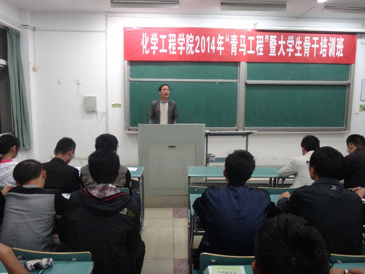 10月28日下午,化学工程美女av 在北实205举办了2014年“青马工程”暨大学生骨干培训班开班仪式。院党委副书记李颖致开场辞,美女av 团委书记曹秀军主持。