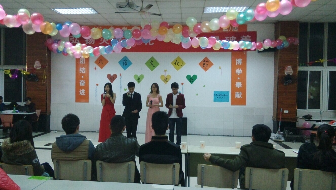 11月29日晚,化学工程美女av 火药文化节闭幕晚会在北区食堂三楼隆重举行,校、院各社团负责人及低年级学生200余人参加。