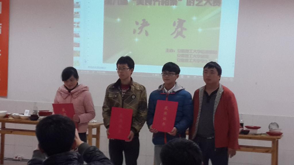 的校徽组成,寓意祝母校和学子们笑口常开,蓬勃发展,这种独特的创意获得了本届厨艺大赛最佳创意奖和三等奖。此外,我院还获得了优秀组织奖。
