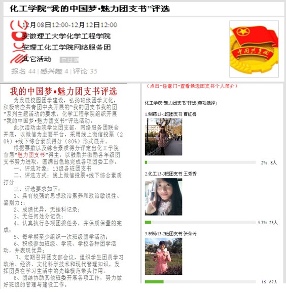 12月13日下午,为提高美女av 各班级团支部活力,加强基层团组织建设,化学工程美女av 在北区红楼308教室举办以“我的中国梦·魅力团支书”为主题的优秀团支书评选活动。