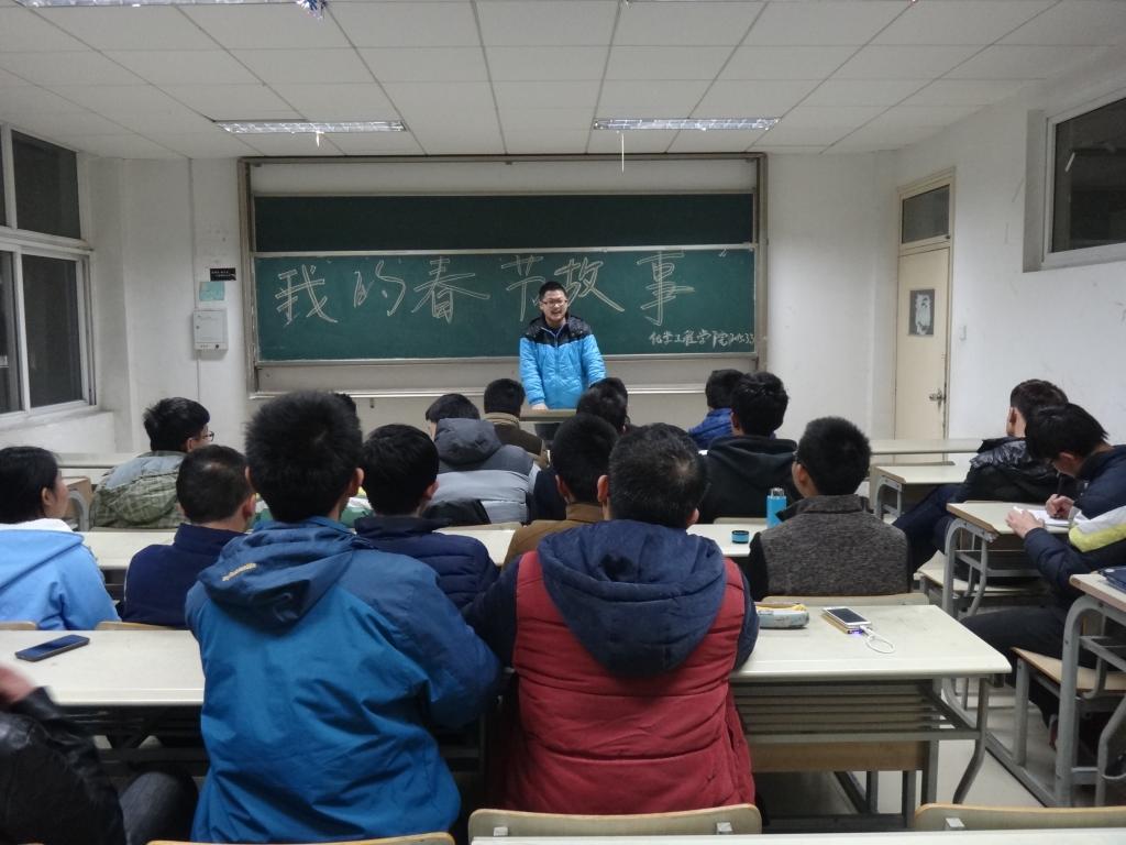 你的春节精彩吗?我们一起来分享!3月3日晚,化学工程美女av 在北区3406教室开展了以“说出我的春节故事”为主题的系列活动,让广大同学说出过年的喜悦,分享寒假见闻和春节故事,引导大家为实现更美好的明天而不断努力。院团委老师杨志华、部分学生会成员及低年级学生代表参加了交流会。