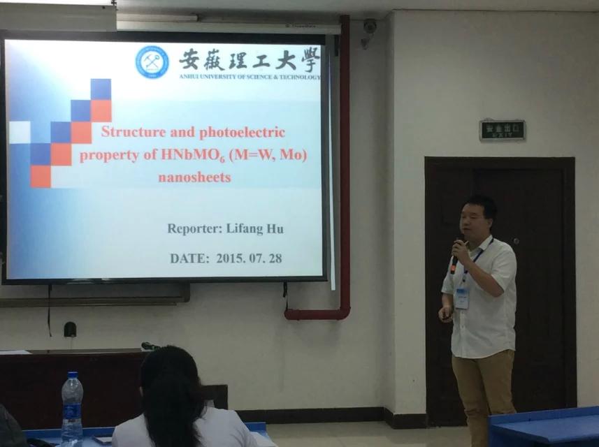 会议期间,我校师生与与会专家学者展开了深入交流。化工美女av 胡丽芳博士作了题为《HNbMO6(M=W, Mo)纳米片的结构和光电性质研究》的精彩学术报告,受到与会人员的关注与好评。