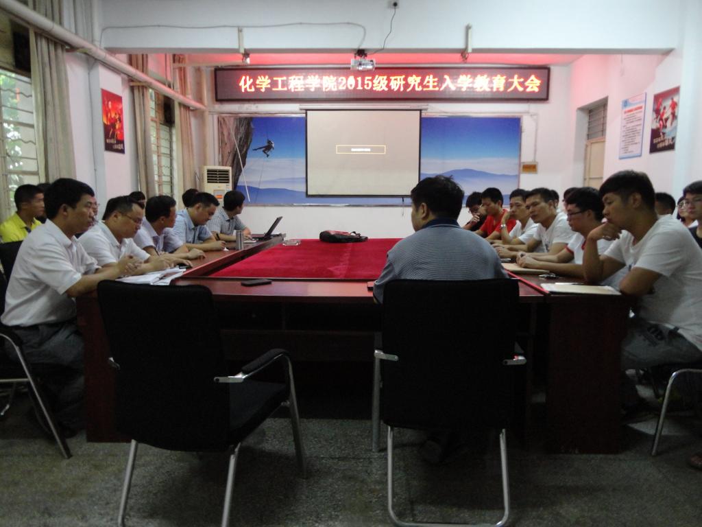 会议室召开2015级研究生入学教育大会,院长何杰、副院长刘锋、院党委副书记徐泽绵、各系主任与研究生新生参加了大会。