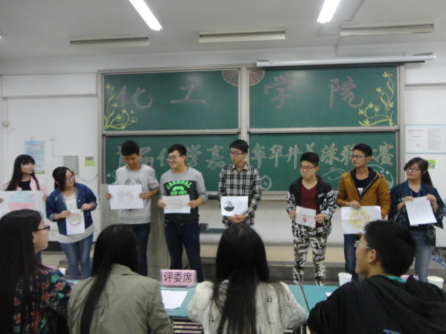 本次比赛以“化学嘉年华”为主题,提倡积极创新,用色彩美化生活。首轮比赛于5月27日晚在北实207举行,各选手携带自己的纸质作品参赛,并对作品的创意进行解说,由评委打分,排出名次。29日下午,进行次轮比赛,优秀作品作者在井盖上作画。参赛的十份作品各具特色,其中卫志超同学的作品《爱在化工》较为突出,作品内容寓意丰富且图案美观,用六种颜色代表化工美女av