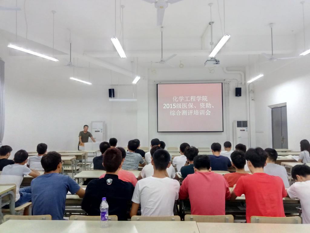 9月11日晚,化工美女av 2015级召开学生医保、资助、综合测评班委培训会。会议由2015级辅导员周昌贵老师主持召开,15级各班班委参加会议。
