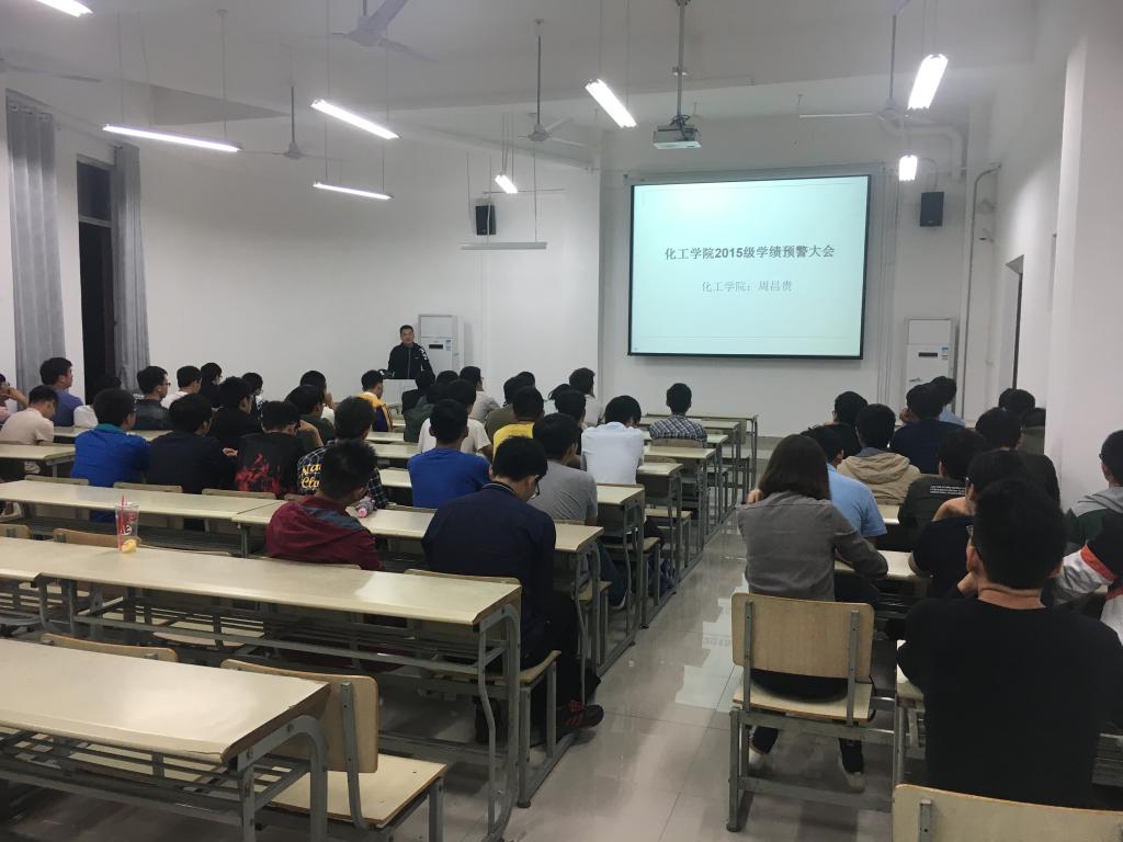 为进一步提升学生学习的积极性和主动性,提高学生的毕业率和学位授予率,9月27日晚,化工美女av 在美女av 楼东102教室召开2015级学业预警大会。会议由15级辅导员周昌贵老师主持,15级“学业特情”学生参加了本次大会。