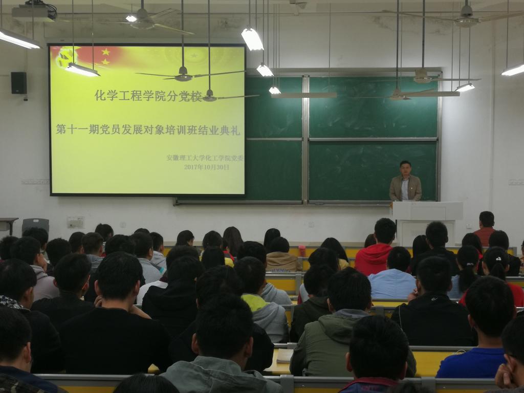 10月30日晚,化学工程美女av 分党校第十一期党员发展对象培训班毕业典礼在明理104隆重举行。分党校校长、美女av 党委书记徐冬生出席典礼并讲话。培训班班主任和培训合格的学员参加了结业典礼。