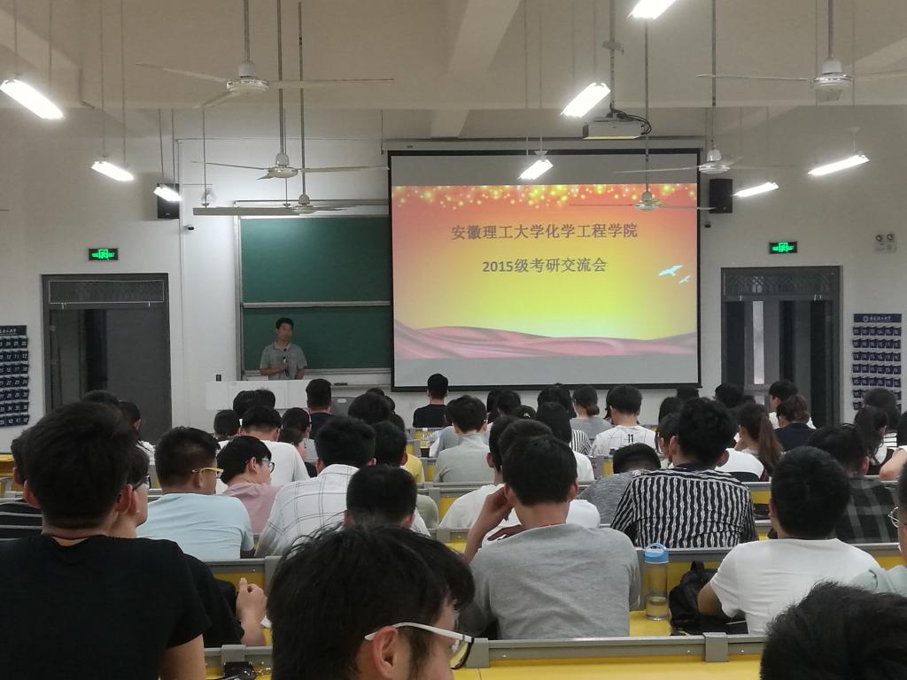 为使同学们更深入地了解考研中的各种方法与技巧,帮助大家树立合理考研目标,及时解决考研中遇到的各种困难,5月14日晚,化工美女av 在明理202教室举办考研经验交流会。2014级5名考研优秀学生代表与美女av 200余名2015级学生分享了考研经历与体会。会议由美女av 党委副书记徐泽绵主持。