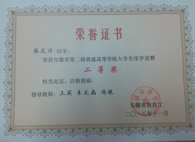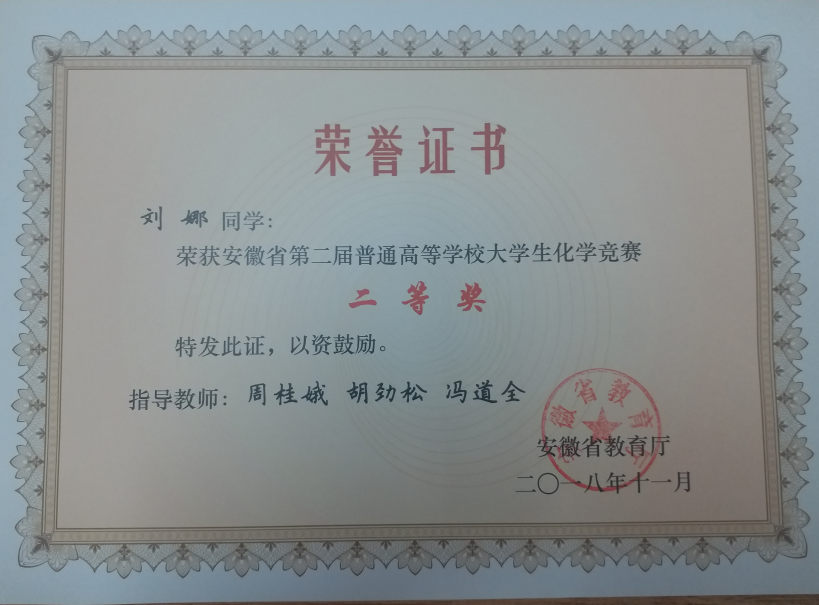 我院学子在安徽省第二届普通高等学校大学生化学竞赛中获佳绩