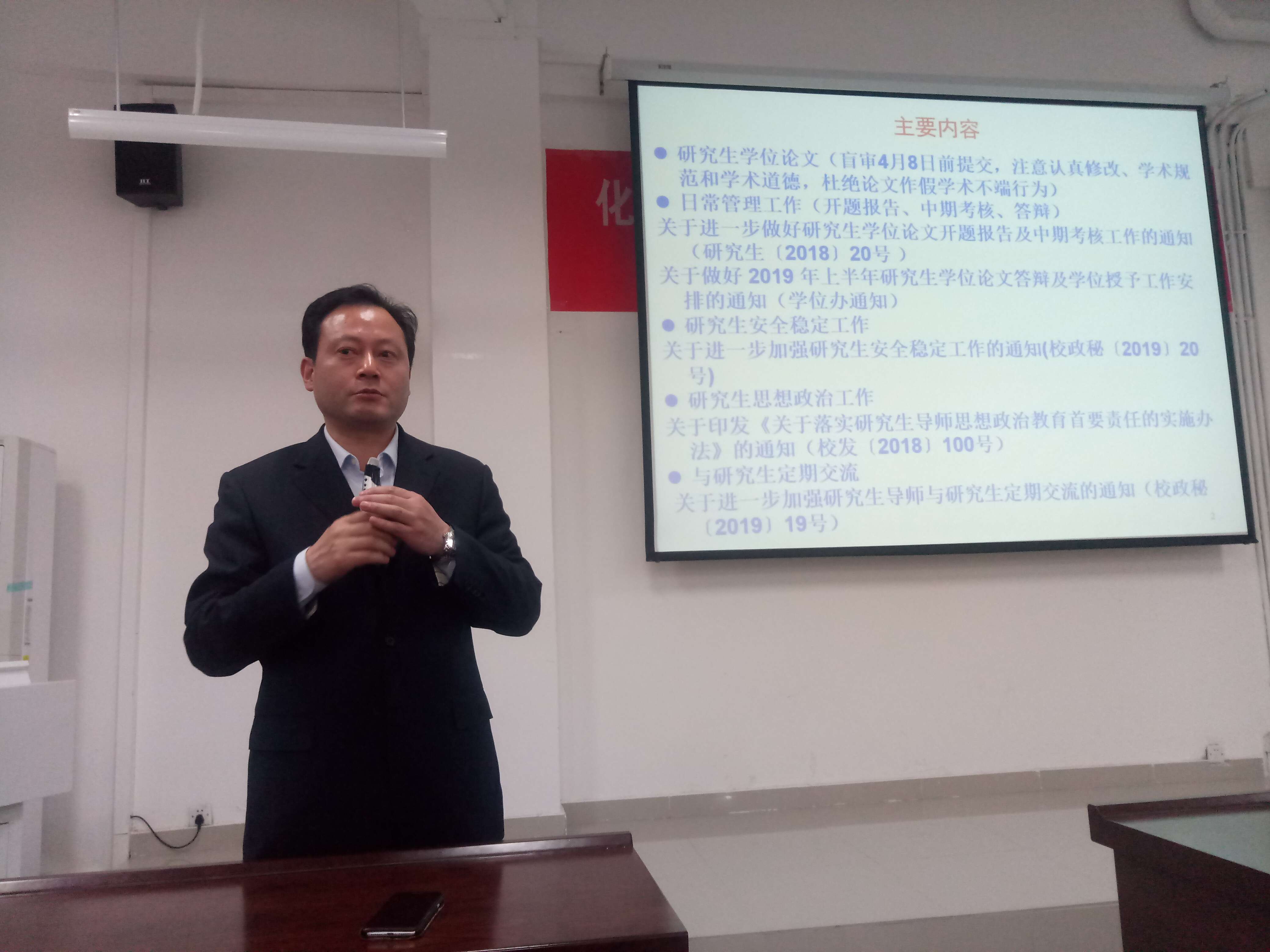 4月3日下午,化学工程美女av 在崇礼楼栋102会议室召开硕士生导师和研究生工作会议,邢宏龙副院长(主持工作)就近期研究生安全稳定工作进行安排部署。会议由武成利副院长主持,毕业硕士生和硕士生导师40余人参加会议。