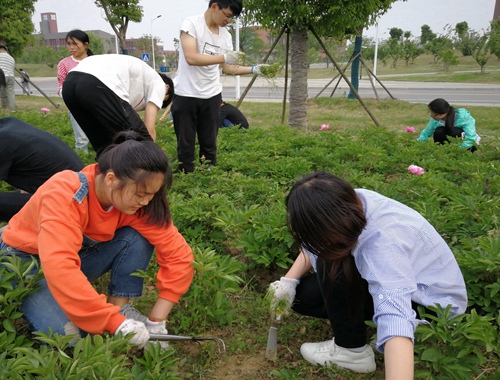 2018级能源化学专业学生为芍药花田除草(摄影:钱元)