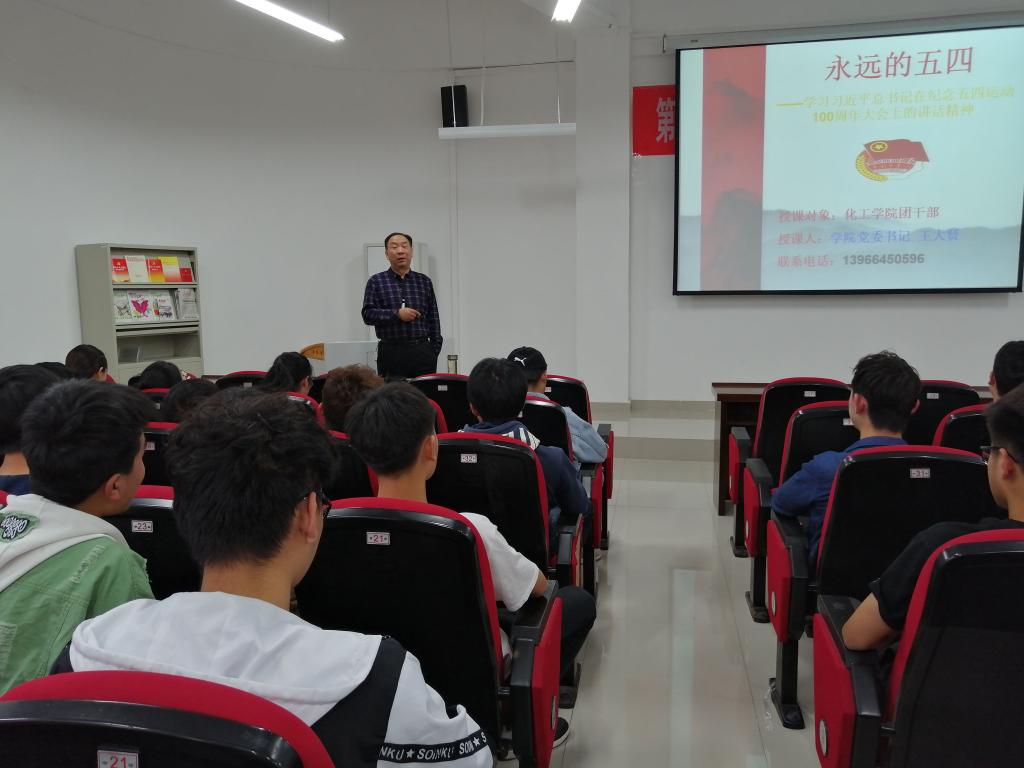 5月7日下午,《永远的五四》专题辅导报告会在化工美女av 102教室举行,美女av 党委书记王大贤专门为一百多位共青团干部、团员骨干授课。他结合五四运动的历史背景、爆发原因、运动过程等重要史料,教育引导青年学生在新时代继承“爱国、进步、民主、科学”的伟大五四精神,坚持中国共产党领导,同人民一道,为实现“两个一百年”奋斗目标、实现中华民族伟大复兴的中国梦而奋斗。