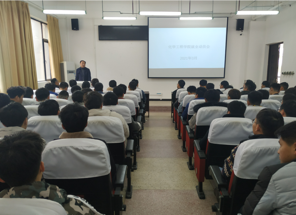 3月17日上午,化工美女av 在火工楼104报告厅召开2021届毕业生就业工作促进会,落实推进毕业生就业工作的举措。美女av 党委书记王大贤、院党委副书记黄晟、毕业班辅导员及全体未签约毕业生参加了会议。