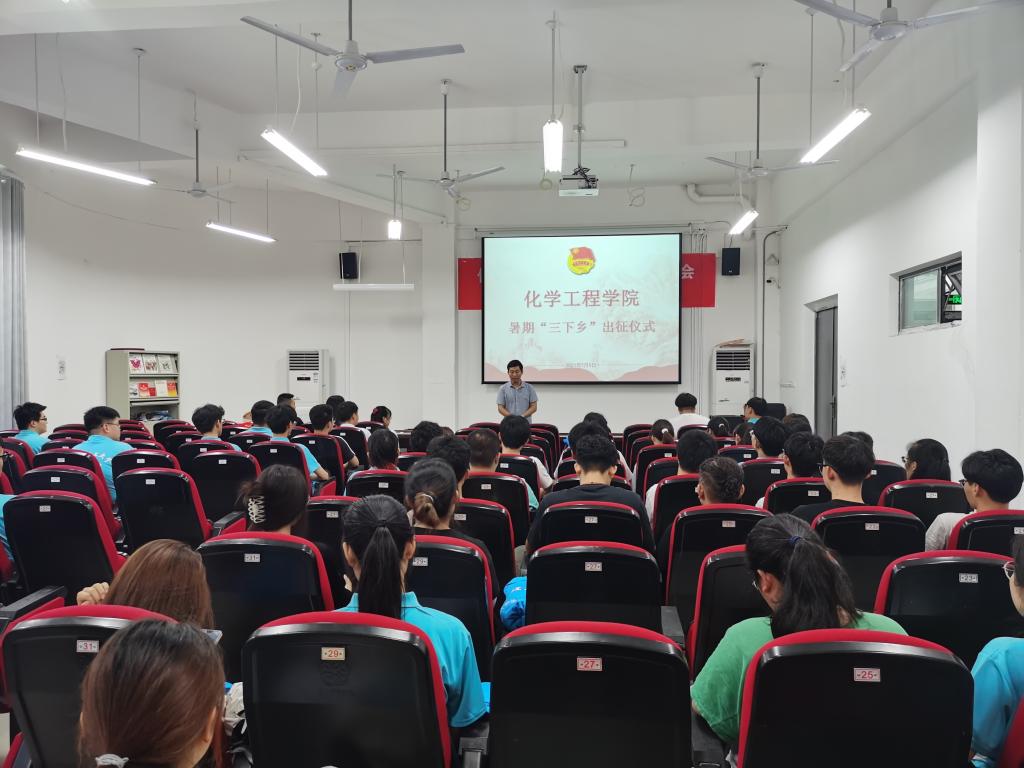 7月9号,化工美女av 2021年大学生志愿者暑期“三下乡”社会实践活动出征仪式在崇礼楼102报告厅举行。院党委书记徐泽绵、团委书记周昌贵出席仪式并讲话,院“三下乡”社会实践团队师生代表共百余人参加了出征仪式。