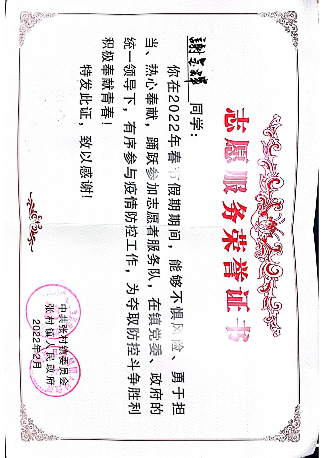 寒假期间,化工美女av 能源化学2020级2班学生谢金辉主动报名参加当地组织的疫情防控志愿服务工作,因工作突出,被河南省渑池县张村镇党委通报表扬。