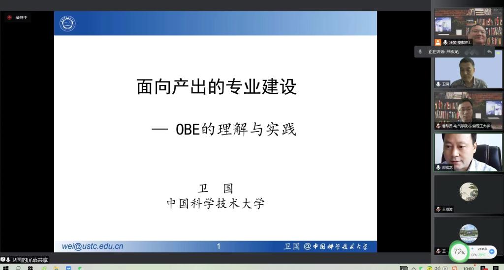 4月18日上午,应教务处和化学工程美女av 邀请,中国科学技术大学卫国教授作题为《面向产出的专业建设—OBE的理解与实践》的线上工程教育认证专题辅导报告。化学工程美女av 院长邢宏龙教授主持报告会。