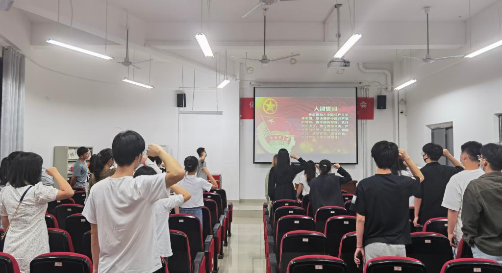 5月4日中午,化工美女av 组织今年新入团同学和部分团员代表在崇礼楼102报告厅进行入团宣誓。“我志愿加入中国共产主义青年团,坚决拥护中国共产党的领导,遵守团的章程,执行团的决议,履行团员义务,严守团的纪律,勤奋学习,积极工作,吃苦在前,享受在后,为共产主义事业而奋斗。”团员青年面向团旗,紧握右拳,郑重宣誓,在庄严肃穆的仪式中再一次坚定初心,坚守信仰,引导着团员青年不忘誓言,不辱使命,永葆先进。化工20-2班团员张逸菲讲述了自己加入共青团的体会和成长经历,她说:“我立志做一名优秀的共青团员,努力学习,做全面发展的大学生,以优异的成绩回报老师、回报学校、回报祖国。”