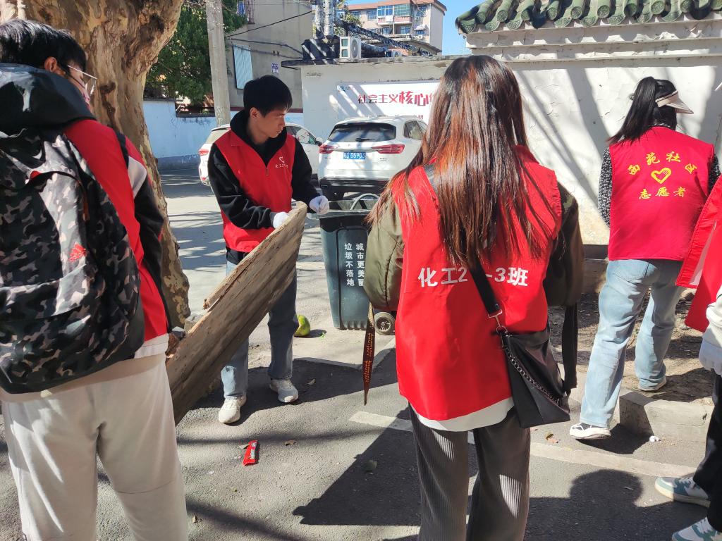3月14日上午,美女av 50余名志愿者来到泉山街道西苑社区参与旧城改造、城市更新、文明创建等活动。同学们在西苑社区广场,由社区工作人员统一分配工具,志愿者身着红马甲,拿着铲刀、扫把、垃圾袋等工具,三五结伴对承包区沿街卫生死角进行彻底清扫,并对墙体、电线杆、电表箱和楼道上的城市“牛皮癣”进行全面清理,有的清理草坪上的纸屑瓶罐,有的清理收拾楼道里的废弃物,也有的动手清扫街道两侧的沟渠。