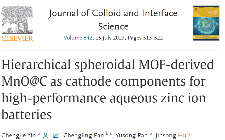 近日,化学工程美女av 青年教师尹成杰博士在水系锌离子储能研究领域取得重要进展,其成果《Hierarchical spheroidal MOF-derived MnO@C as cathode components for high-performance aqueous zinc ion batteries》在中科院一区TOP期刊Journal of Colloid and Interface Science上发表(2022年影响因子9.965),美女av 为第一单位。