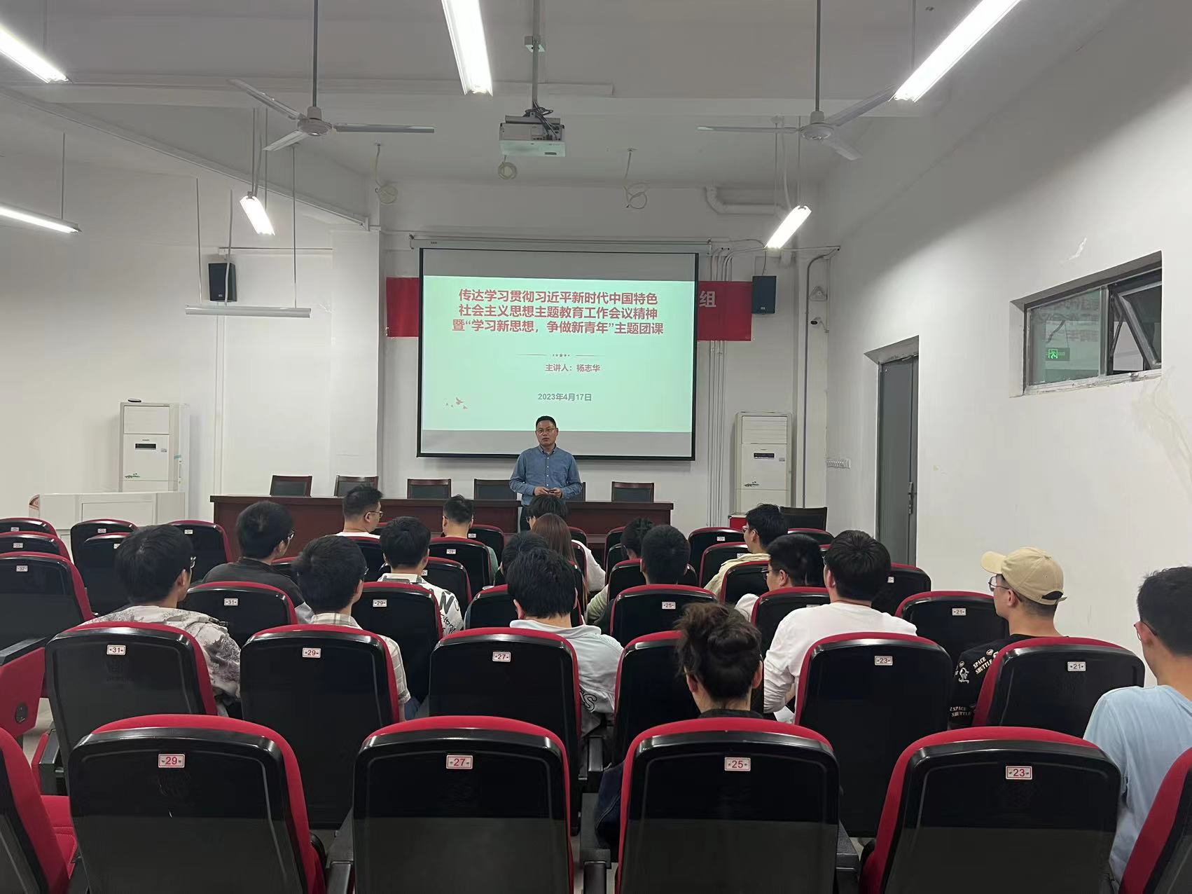 为学习贯彻习近平新时代中国特色社会主义思想主题教育工作会议精神,积极引导化工美女av 研究生加强政治站位,提高政治素养,4月17日晚,化工美女av 研究生会在崇礼楼东102报告厅举办“学习新思想,争做新青年”主题团课活动。本次团课由美女av 团委书记杨志华主讲,研究生会全体成员参加。