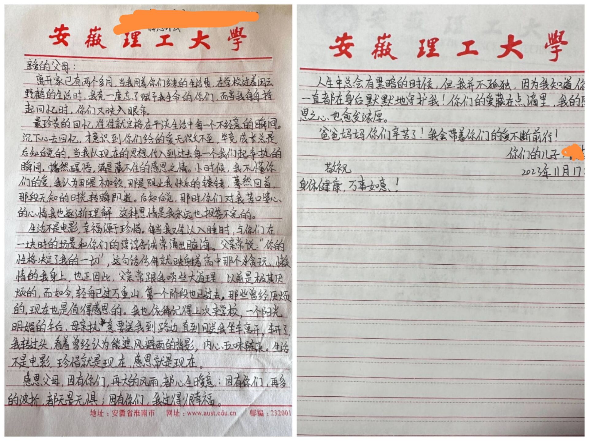 11月15日,为鼓励同学们表达对父母长辈的孝顺和敬爱,培养同学们的孝善之心,化工学院“一站式”学生社区开展了“感恩家书”活动。