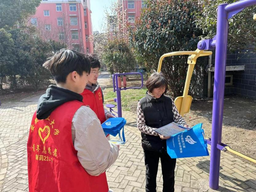 3月15日,志愿者们来到学校周边社区进行保健知识科普和医保养老政策宣传。同时,志愿者们还向老人宣传了正确用电和相关注意事项,提高了老人的安全意识。